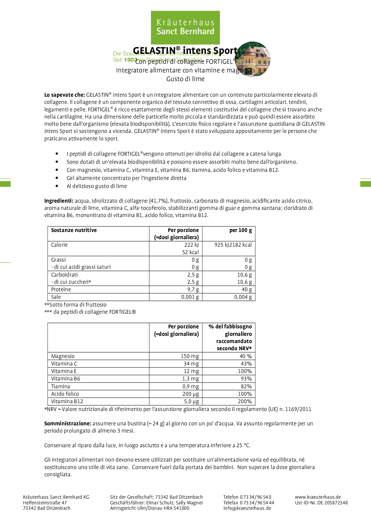 Noi di Sanct Bernhard siamo un'azienda familiare tradizionale con sede nel Giura Svevo. Dal 1903 produciamo integratori alimentari, prodotti per la cura del corpo e rimedi naturali di alta qualità. Poiché la Sua salute ci sta a cuore, la qualità è per noi una priorità assoluta.