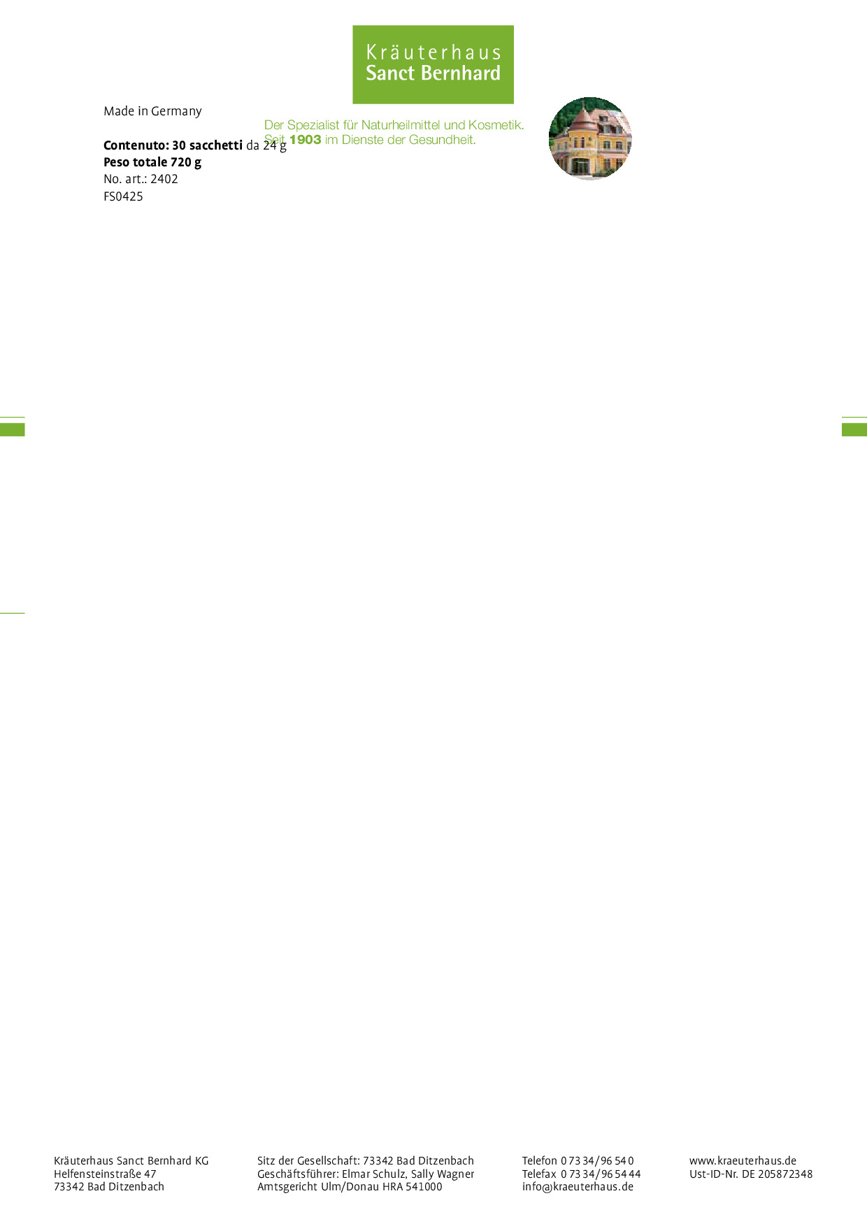 Kräuterhaus Sanct BernhardRimedi naturali e cosmetici made in Germany